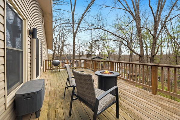 The den is where the hosting action is. You will find a lot of natural light, views of the peaceful cove of Lake Windsor. An open space concept with a living area, a fully equipped kitchen, and access to the back deck greets you at the front door. Plenty of seating with a dining table, couch, and accent chairs. Watch your favorite shows on the Smart TV (streaming services only, no cable provided) or enjoy the backyard and deck.