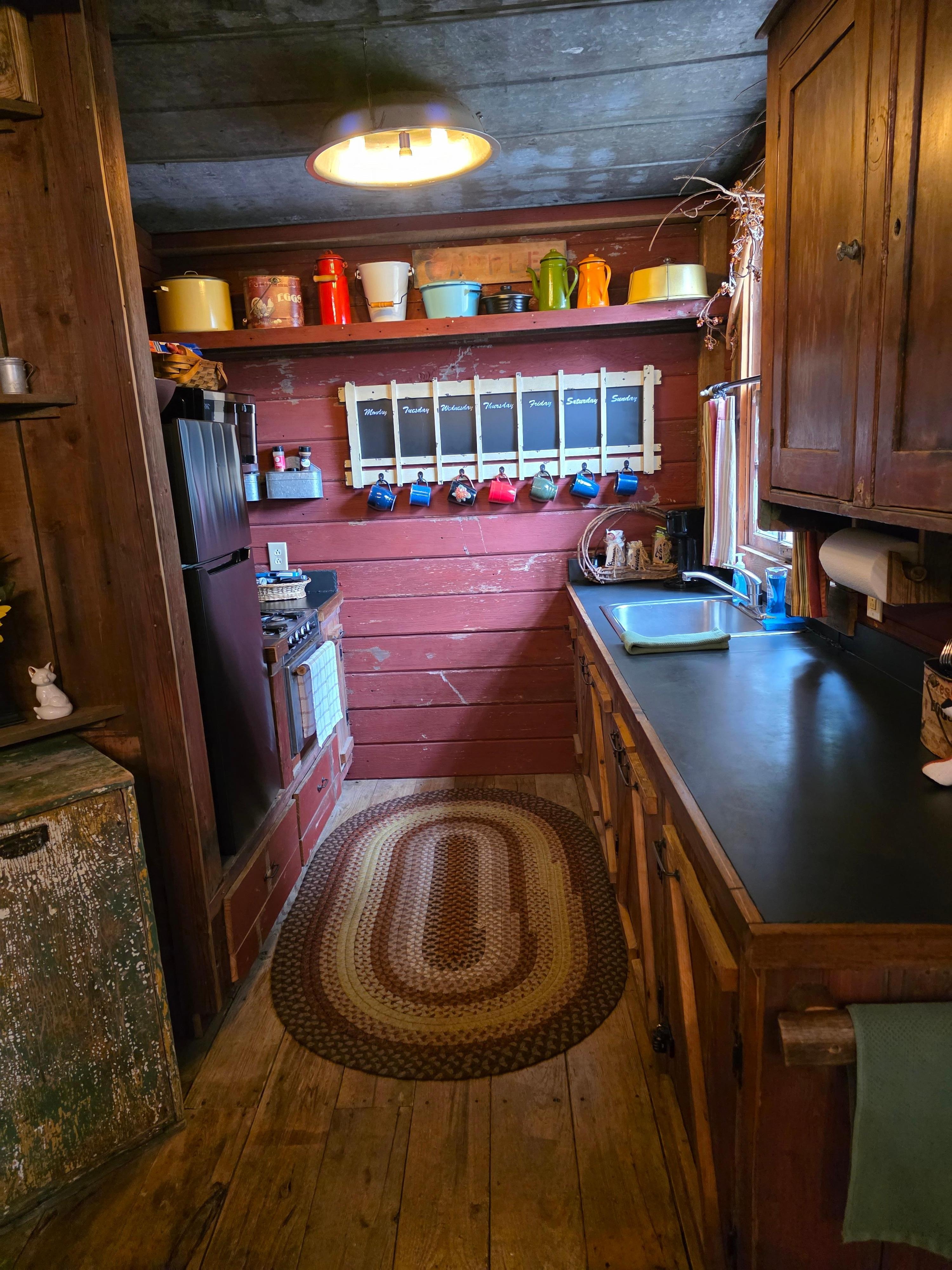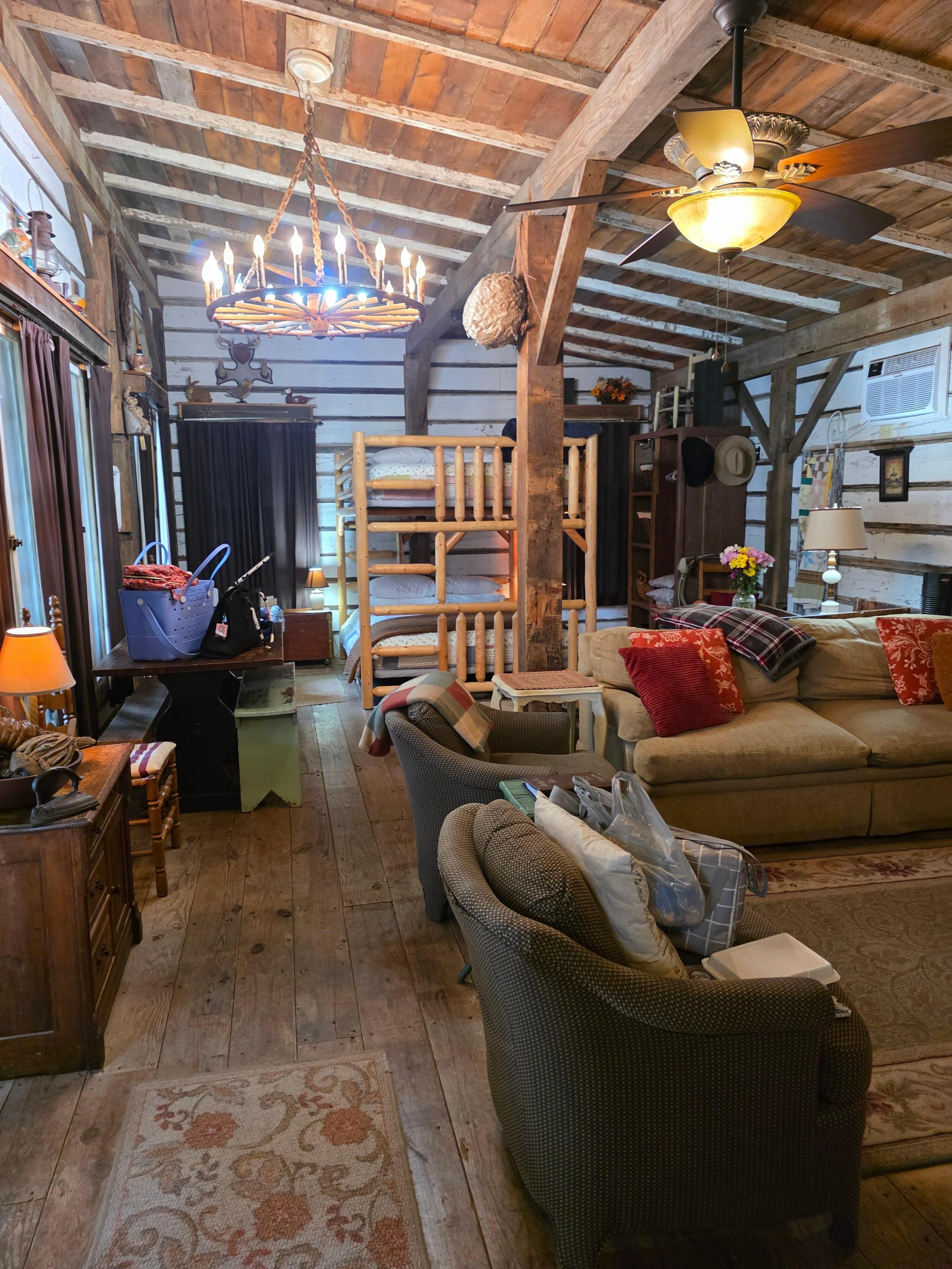 Mit seiner ländlichen Umgebung, dem Äußeren des Scheunenholzes, den weiß getünchten Innenwänden mit Brettern aus den 1800er Jahren, den breiten Kiefernholzböden, den handgefertigten Schränken mit Vintage-Tafelarbeitsplatten und dem Scheunenbalkenrahmen ... werden Sie von subtilen Gefühlen eingehüllt von unseren Pionieren, ein Gefühl des wohltuenden Wohlbefindens und eines einfacheren, ruhigeren Lebensstils, der all Ihre modernen Annehmlichkeiten bietet.