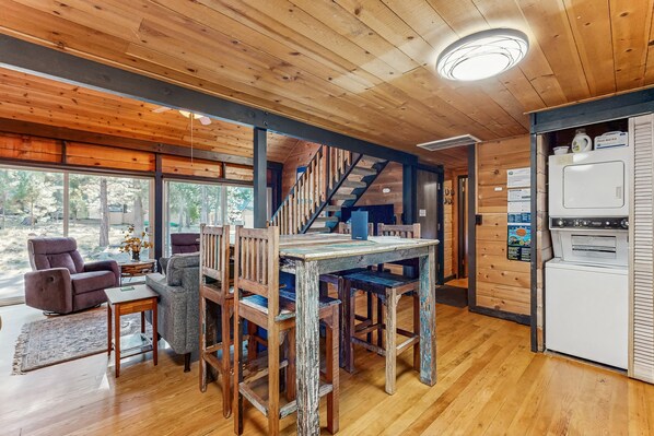 This Sunriver cabin has new owners as of 2025 who have thoughtfully refreshed the home with many upgrades, including a brand-new heating and AC system, refinished hardwood floors, a new TV, living room furniture, mattresses, and bedding, plus some new artwork. Guests will also enjoy complimentary use of 2 kids’ bikes, 4 adult bikes, and helmets for exploring the miles of scenic trails right outside the door.