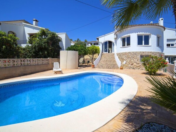 La Fustera: Gemütliches, komfortables Zweifamilienhaus "La Marina". Im Ort, 5.7 km vom Zentrum von Calpe, im Bezirk La Fustera, sonnige Lage im Villenviertel, 450 m vom Meer, 450 m vom Strand, an einer Hauptstrasse. Zur Mitbenutzung: Grundstück (eingezäunt), Garten, Schwimmbad (saisonale Verfügbarkeit: 01.Jan. - 31.Dez.). Aussendusche, Terrasse, Grill, Parkplatz. Lebensmittelgeschäft, Supermarkt 46 m, Restaurant, Bar, Café 400 m, Bushaltestelle 250 m, Sandstrand "Playa La Fustera" 450 m. Sporthafen 950 m, Jacht-Hafen 950 m, Golfplatz (9 Loch) 5.4 km. Nahe gelegene Sehenswürdigkeiten: Aqualandia, Mundomar, Terra Mítica, Terra Natura, Benidorm Palace Benidorm. Bitte beachten: Der Besitzer wohnt auf dem gleichen Grundstück.