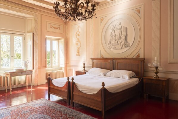 Eine „besondere“ Unterkunft, Nebengebäude einer historischen Villa. Das komplett renovierte Apartment zeichnet sich durch Deckenfresken und antike Möbel aus und verfügt über eine voll ausgestattete Wohnküche, ein separates Wohnzimmer mit Flachbild-TV und ein Badezimmer mit komfortabler Badewanne, Haartrockner und Pflegeprodukten.