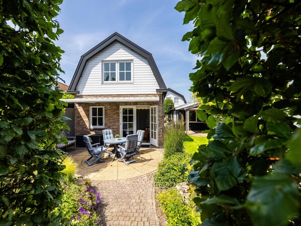 Gemütliches Ferienhaus für vier Personen. Im Erdgeschoss finden Sie eine gemütliche, offene Küche, ein Wohn- und Esszimmer und ein Badezimmer mit Badewanne. Sowohl im Erdgeschoss als auch im Obergeschoss gibt es eine separate Toilette. Im Obergeschoss befinden sich zwei Schlafzimmer, eines mit einem Doppelbett und eines mit zwei Einzelbetten. Draußen gibt es einen Garten mit Teich und Esstisch und Sie können Ihre Fahrräder sicher unterstellen