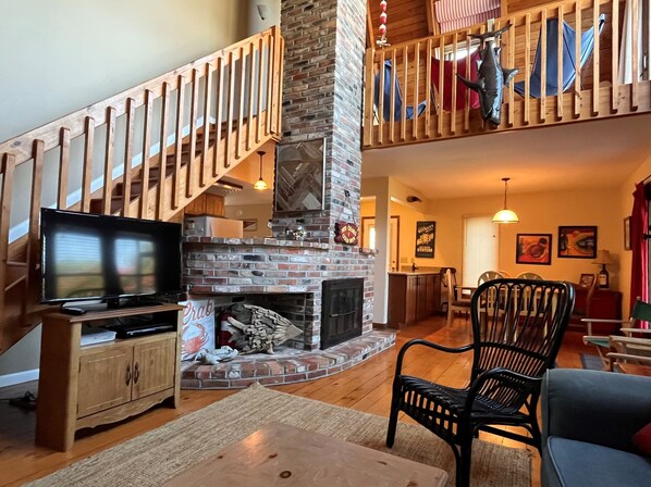 -Bedding: King, Queen, Pyramid bunk (Double/twin), Loft: Double futon (sleeps 8)