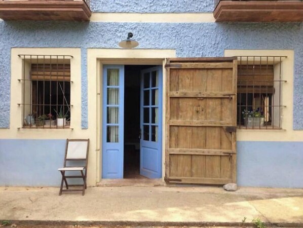 Die Casanova liegt in der Nachbarschaft von Beuda (Region La Garrotxa); am Fuße des Berges "La Mare de Déu del Mont" an seiner Südseite; in einem Gebiet der Gips- und Alabastergewinnung; bei 300 m. aus der Stadt Beuda; 5 km von Besalú; und in der Nähe von wichtigen Kirchen und Eremitagen der Romanik. Das Haus zeichnet sich auf den ersten Blick durch seine blaue Farbe aus. Die Casanova wurde zu Beginn des 20. Jahrhunderts im Jahr 1921 erbaut. Vor kurzem wurde es in Stein und Holz nach dem ursprünglichen Modell und der lokalen architektonischen Tradition wiederhergestellt. und unter Berücksichtigung derselben, die bereits vorhandenen Farben zu seiner Wiederherstellung. Das Haus, der Garten atmen ein Klima der Ruhe und Stille; Mit der Harmonie der Innen- und Außenräume ein idealer Ort für Ruhe und Erholung. Routen zu Fuß und mit dem Fahrrad. Einheimische Flora und Fauna. Bio-Gartenplatz des Hauses. Gleich nebenan und völlig unabhängig ist ein kleines restauriertes altes Haus, das unsere Kabine ist. Es hat zwei Zimmer (ein Doppel- und ein Dreibettzimmer), ein Wohnzimmer mit Biomasseheizung, im Erdgeschoss befinden sich die Küche, das Badezimmer und ein kleines Wohnzimmer - Esszimmer mit Kamin, mit privatem Gartenbereich.