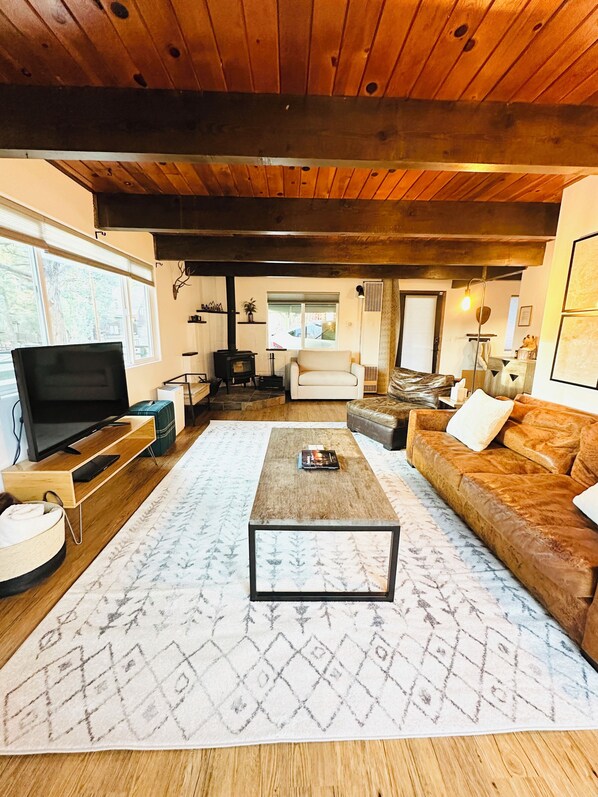 Breathe in the mountain air or cozy up inside with a nice wood-burning fireplace in a very quiet nice neighborhood of Whispering Forest located north shore edge of Big Bear Lake surrounded by the Antelope Valley with beautiful slope views waiting for you to enjoy.