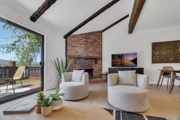 Amoroso Haven By Destination Big Bear: Close to the Lake and Village! Condo! Minutes Away From Skiing! Private Patio! Fireplace! Vaulted Ceilings! Community Spa/Pool/Dock!