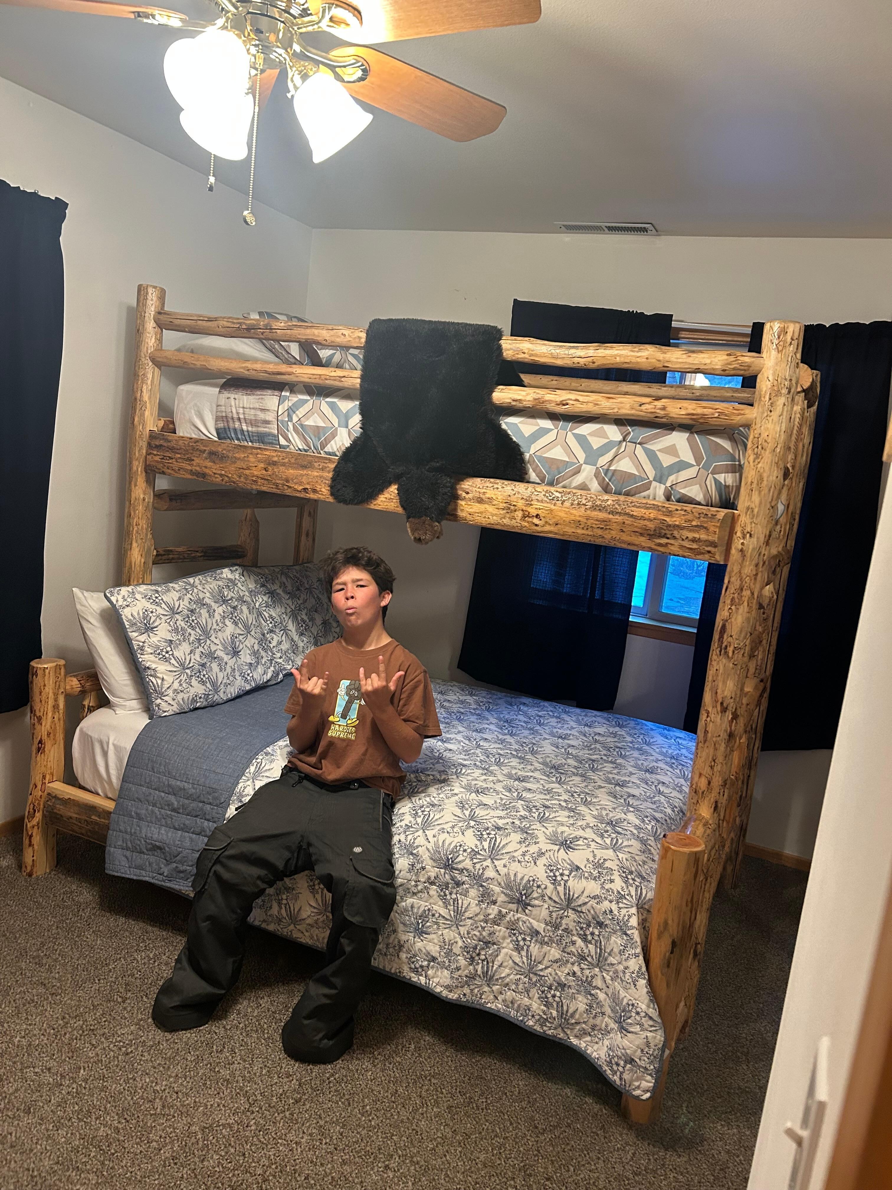 Bedroom #2 has a bunk-bed. Lower bunk is a double, upper bunk is a single.