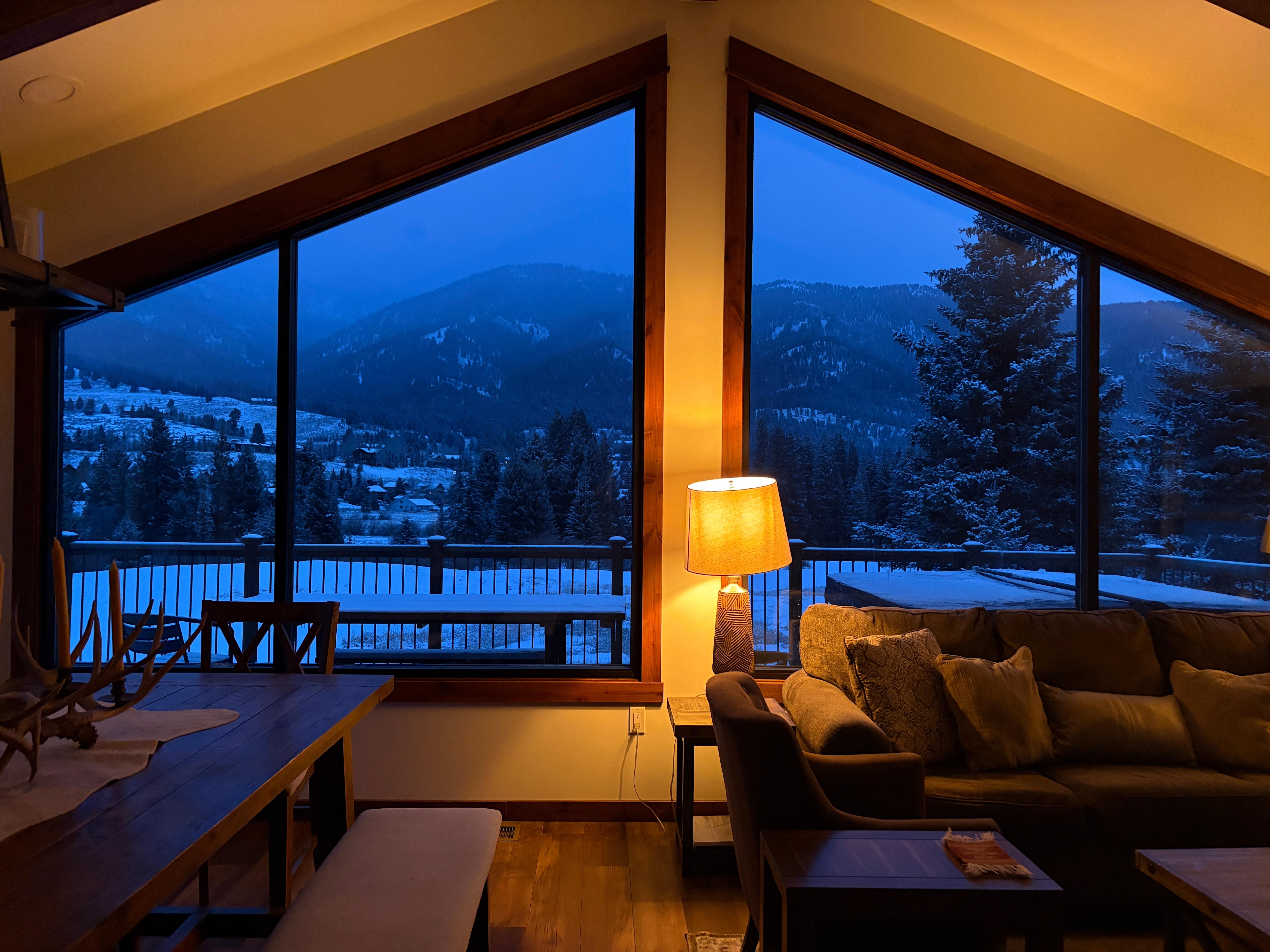 From the property enjoy Cross Country Skiing (the groomed trail runs on the west property line) take it around the golf course or if you feel ambitious you can head to Lone Mountain Ranch for lunch or a cocktail. Mountain Biking/Hiking winter or summer. Watch from the deck or partake in Sledding for the adults/kids down the hill from the 17th tee box. Fly fishing in the summer(West Fork of the Gallatin River is a stones throw past the Tee Box). There are so many things to do you may not have anytime for sightseeing. Montana has a lot of that!! If that still is not enough you can relax in the hot tub and look at the scenery or stars to see how magnificent they are. It looks like a backdrop of the mountains to the north in the daylight and the stars from the hot tub after dark is magnificent. Really unbelievable.