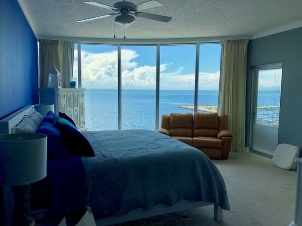 Suchst du den Himmel auf Erden? Wenn ja, ist dieses Juwel genau hier, wo Sie es finden. Diese neu renovierte 2BR / 2BA-Luxuswohnung mit Waschmaschine und Trockner verfügt über mehr als 2000 m² Wohn- und Nutzfläche im Innen- und Außenbereich, hochwertige Oberflächen, ein beeindruckendes Dekor und einen atemberaubenden Blick auf den Golf von Mexiko von fast jedem Zimmer aus. Genießen Sie das Wohn- / Esszimmer, während Sie aus den raumhohen Fenstern schauen, aus denen die Außenwände der Wohnung bestehen. Beobachten Sie die Wellen am Ufer oder in der Lounge auf Ihrem privaten, umlaufenden Balkon, der von beiden Schlafzimmern aus zugänglich ist, und genießen Sie den Blick auf eine scheinbar ewige Küste, während Sie die Pracht des unglaublichen Golfs von Mexiko bewundern Mexiko und der atemberaubende Sonnenuntergang am Mississippi. Müde? Schlafen Sie erholsam im unglaublich geräumigen Hauptschlafzimmer und wachen Sie durch die deckenhohen Fenster mit Blick auf das Wasser mit einem zusätzlichen Bonusblick auf den Leuchtturm auf - alles, ohne jemals Ihr Bett zu verlassen. Wenn Sie sich auf den Tag vorbereiten, können Sie das Doppelwaschbecken, die große ebenerdige Dusche oder sogar die Doppelbadewanne im Hauptbad genießen. Gäste haben? Das zweite Schlafzimmer verfügt über einen eigenen Eingang und ein Bad sowie einen Kühlschrank, eine Mikrowelle und eine Kaffeemaschine. Der geräumige Schlafbereich verfügt über ein Queensize-Bett mit luxuriöser Bettwäsche.