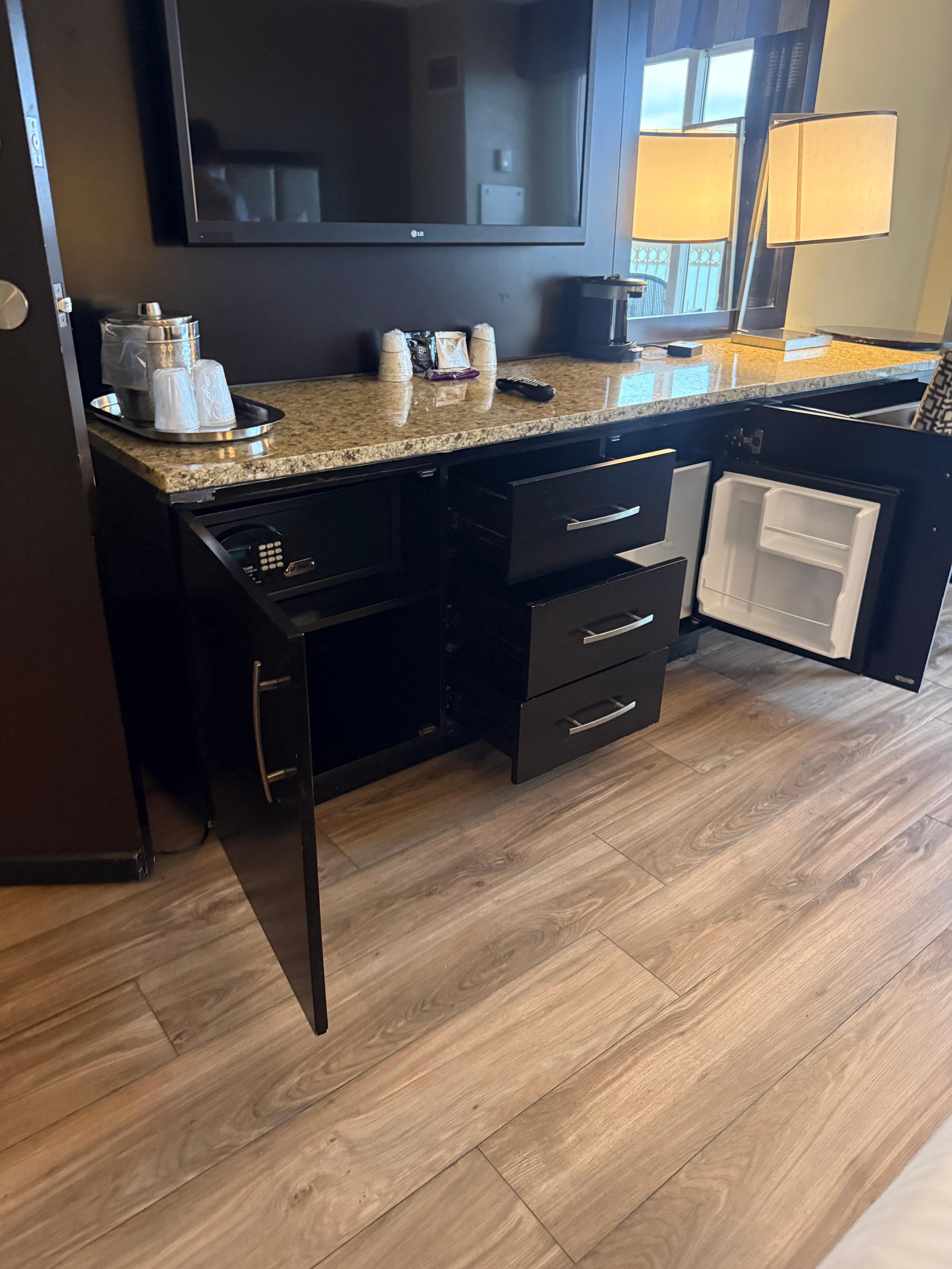 - Separate Sitzecken, Mini-Kühlschränke und Wasserkocher mit Kaffee-/Teezubehör