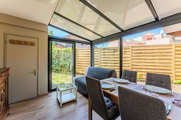 Kürzlich renoviert, bietet die Wohnung Platz für bis zu 3 Personen und bietet allen notwendigen Komfort, einschließlich Bettwäsche und Handtüchern. Ein Abstellraum für Fahrräder und Windsurfmaterial steht zur Verfügung (auf Anfrage, bitte mit Ihrem Gastgeber absprechen), während das geschlossene Grundstück für Sicherheit und Ruhe sorgt. Ein privater Parkplatz ist ebenfalls vorhanden.