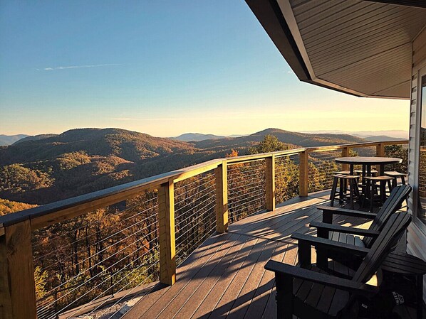 I am not sure where to begin but from the moment we passed through the gate and saw the view, we knew found the perfect vacation home. The photos in this listing don't do the view justice ... there is row upon row of mountains in every direction. Absolutely Stunning. The house is almost as incredible as the view. The owners did an amazing job with the flow and decor, and offered every amenity you can think of. We enjoyed the hot tub, the putting green, the fire pit, the pool table, the shuffle board and the outdoor seating. The only thing we did not use was the indoor fireplace, as we chose to enjoy the beautiful summer temps in the mountains with the outdoor fire pit instead. The main level was where we spend most of our time, as it was so calming and relaxing to share this view with family. The kitchen is designed to be separate but also part of the dining area - sounds strange I know but the flow of the kitchen and dining was nice. You can move furniture around a little (we did so all 6 adults could face and chat with each other). We made sure to put everything back like we found it. All the beds and bedding were SO comfortable. Easy thermostat/modern fans made managing temps easy. The owners, specifically Manny, were great to work with and an excellent communicator. We had questions about the area that he promptly answered and is an excellent host. I want to write more but have limited room left. It is a drive through and up mountain roads. We LOVED this home.