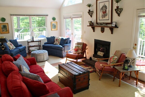 Main Floor- Living room with Smart TV with streaming & YouTube (the wood-burning fireplace is NOT usable); Kitchen with dishwasher, Dutch oven, blender, food processor & standard drip coffeemaker; Full hall bath; Bedroom with King bed.