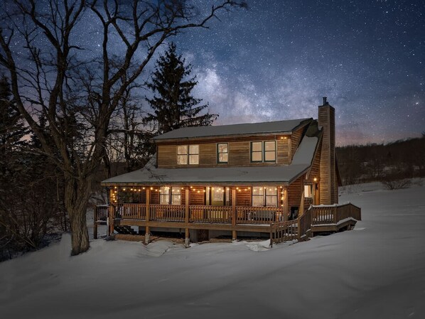 Tucked into the peaceful hills of the Great Western Catskills, Stella Firma is a cozy three-bedroom, two-bathroom mountain retreat with vintage charm, modern updates, and plenty of space to relax. Whether you’re watching the stars from the porch or exploring the country roads nearby, this home offers a warm, inviting place to unplug and recharge.