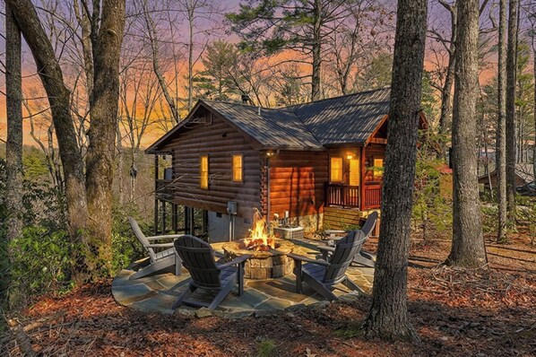 There is a very spacious covered back porch overlooking woods and mountain views. This is the perfect spot to enjoy that 1st cup of morning coffee or a drink at the end of the day. Keep the camera handy because wildlife in this area is plentiful and you might just get a glimpse of one of those North Georgia black bears or a white tail deer that frequent the area. Listen to the gentle rush of wind through the trees, the sound of a nearby hawk and don't forget to breath in that wonderful mountain air. Enloy some roasted marshmallows at the newly built fire pit patio under a star studded night, the perfect ending to a perfect day!
