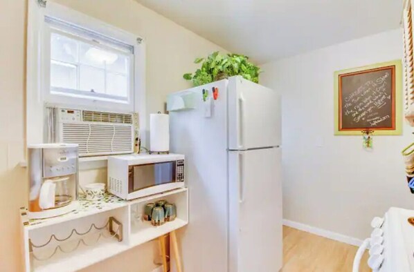You'll find a full kitchen inside, equipped with modern appliances and cookware for your convenience. TV with antenna gets 45 local channels and free High Speed (fiberoptic) WiFi are both provided.