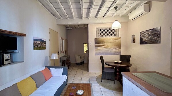 Das Hotel liegt im Herzen des historischen Viertels in einem Haus aus dem 15. Jahrhundert, ein Studio-Stil Bonifacio Charakter, komplett renoviert und mit einer Klimaanlage Hitachi Reversible ausgestattet. Wände mit Kalk / alten Balken / Lamellen / 3 doppelt verglaste Holzfenster, Einbauküche mit Essecke und Mini-Lounge, Schlafbereich und Badezimmer mit begehbarer Dusche, Mini-Ankleideraum und Speisekammer. Bettwäsche und Deko-Qualität.