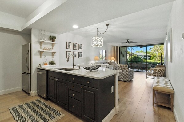 - Dishwasher, Oven, Microwave, Stove & Full-size Fridge