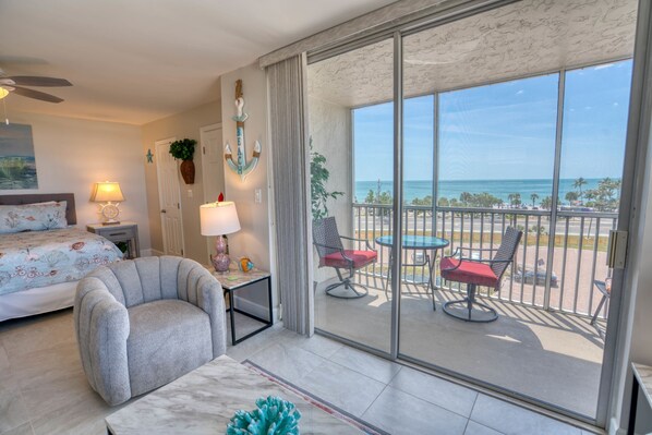 Inside, the condo has been completely remodeled and features a clean, modern, and upscale feel throughout. The space includes a king bed, a fully equipped kitchen, fast Wi-Fi, and a TV with cable and streaming capabilities. Fresh linens, bath towels, and beach towels are provided to ensure a smooth and comfortable stay.