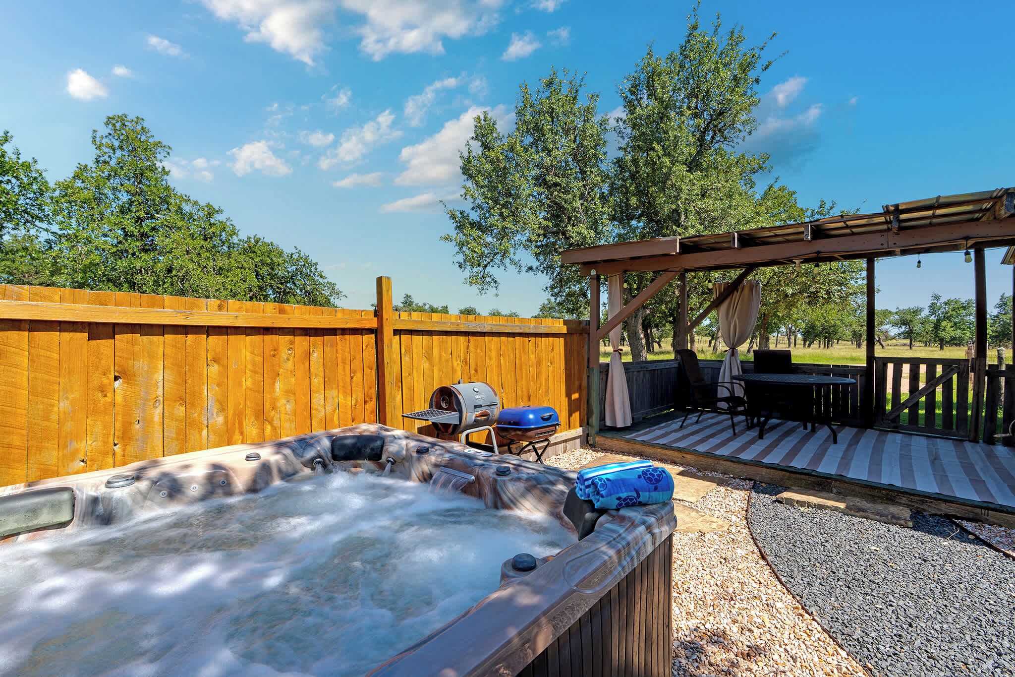„Perfect spot!!! We had an early morning spot to watch the sun rising from Enchanted Rock.. the trip was made much better due to a previous evening of sitting by the fire pit and drinking wine!! With a short drive to the park. Also this spot is close enough to Fredericksburg to make a weekend in the Hill country very relaxing. “