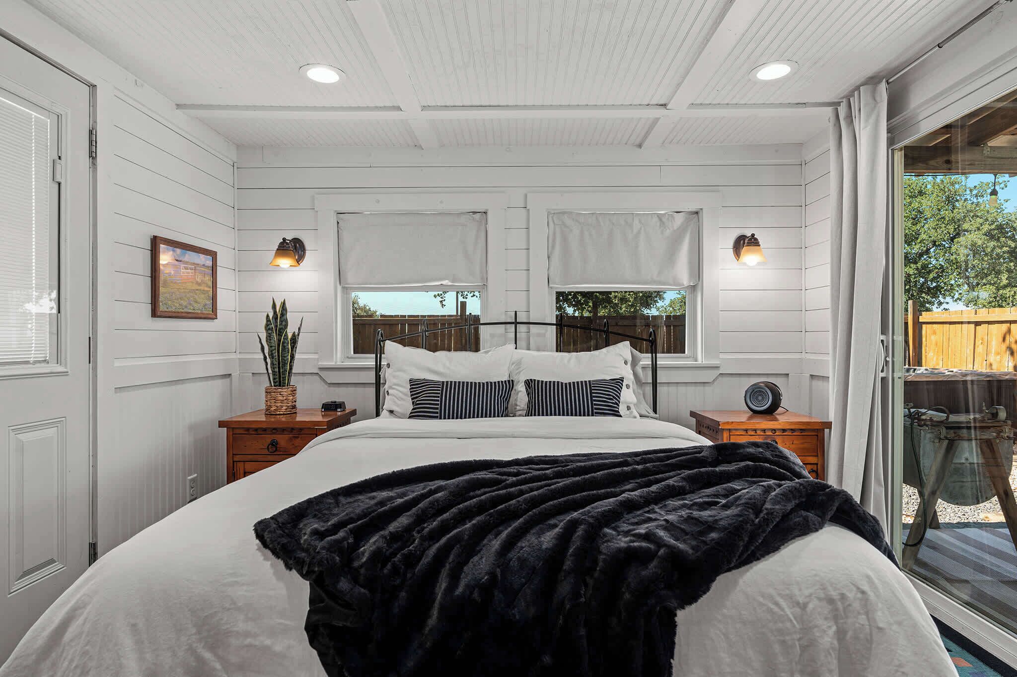 „Comfy, relaxing and close enough but also far away enough from downtown Fredericksburg:) I did miss using the outdoor shower but maybe next time ;) If it wasn’t July we would have enjoyed the hot tub as the backyard is inviting and private. Checking in was easy and the Wi-Fi access was great. Sometimes you have to work a little while on a short getaway. “