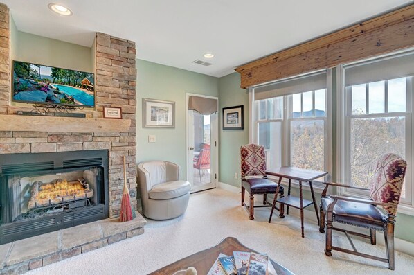 Description: Located in the beautiful development of Echota, this two-bedroom, two-bathroom main floor (entry level, no stairs) condo is perfect for your next vacation. This condo is fully furnished with everything you would need for a long retreat or a short weekend getaway. The kitchen is well equipped to prepare meals and the living room is inviting with a gas log fireplace and mountain view. Curl up, get cozy and read a book, watch TV or take a nap…. the choice is yours! Guests of this unit have access to the deck from the living room or primary bedroom where they can breathe in fresh mountain air while gazing at the mountains and listening to the sounds of nature. Enjoy a short mountain getaway to relax or an extended stay and explore all the High Country has to offer.