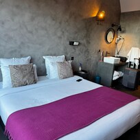 Wenn man nicht die Vorhänge zieht, sieht ein anderer Teil des Hotel einem von nahe ins Zimmer, inkl. Glasdusche. Wenn man die Vorhänge zieht wirkt dann das ganze Zimmer sehr düster. Das Bett war dafür bequem, aber mit dem besagten Vorhang kann man das Zimmer nicht vollständig Verdunkeln.