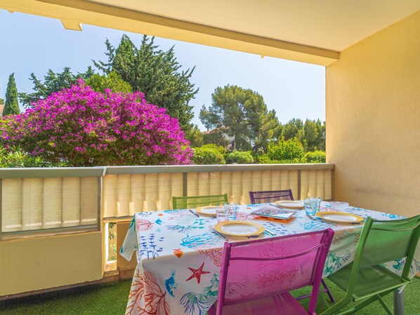 3-Zimmer-Wohnung 45 m2 im 1. Stock, Ostlage. Komfortabel und schön eingerichtet: Wohnzimmer mit TV (Flachbildschirm), Klimaanlage. Ausgang zur Terrasse. 1 Zimmer mit 1 franz. Bett (140 cm, Länge 190 cm), TV (Flachbildschirm), Ventilator. Ausgang zur Terrasse. 1 kleines Zimmer mit 1 Doppeldiwanbett (140 cm, Länge 190 cm). Offene Küche (Geschirrspüler, 4 Glaskeramikplatten, Toaster, Wasserkocher, Tiefkühler, elektrische Kaffeemaschine, Kapseln für die Kaffeemaschine (Nespresso) extra, Kombinationsmikrowelle). Dusche, sep. WC. Terrasse 10 m2, Ostlage. Terrassenmöbel. Zur Verfügung: Waschmaschine, Bügeleisen, Haartrockner. Internet (WLAN, extra). Bitte beachten: Wohnung auf Strassenseite. Nichtraucher-Unterkunft. TV nur FR. Rauchmelder. Inserat einer Privatperson nach Artikel 155, IV, CGI. 83019001923S9