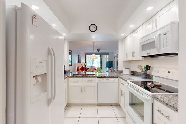 The well-appointed kitchen features a full range of appliances, as well as a comfortable dining space on either side. After a day of sun and sand, retreat to the inviting living space to watch movies or catch up on email over the high-speed WiFi. When it's time to turn in, enjoy the fact that each of the two bedrooms has its own TV and full bathroom.