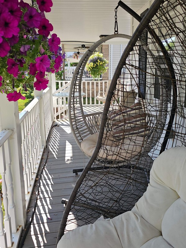 A nice walk to the beach. Very friendly street. Nice to sit on the porch. Everyone who walked by commented on the flowers. Roomy house. It was the perfect getaway for our family. Able to walk to get coffee and breakfast.