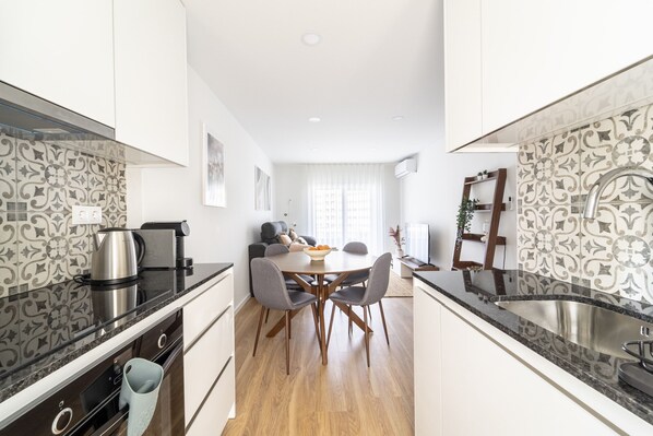 The apartment in Braga has 1 bedroom(s) and capacity for 4 person(s). Accommodation of 55 m². It has 20 m² of terrace, washing machine, dryer, iron, internet access (wifi), heat pump heating, air conditioning throughout the accommodation, outdoor parking in the same building, 1 Television, satellite TV (Languages: English), radio. The electric kitchen is equipped with refrigerator, microwave, oven, freezer, dishwasher, dishes/cutlery, utensils/kitchen, coffee maker, fryer, toaster and electric kettle.