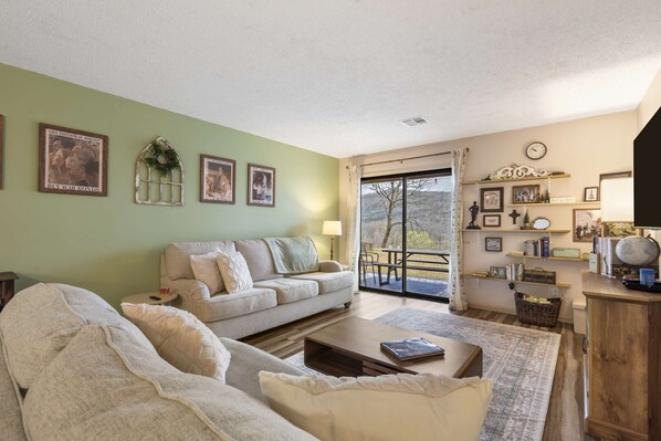 Apartment, Mehrere Betten, Terrasse, Bergblick (Mossy Pines of the Ozarks) | Wohnbereich | 42-Zoll-Flachbildfernseher mit Digitalempfang
