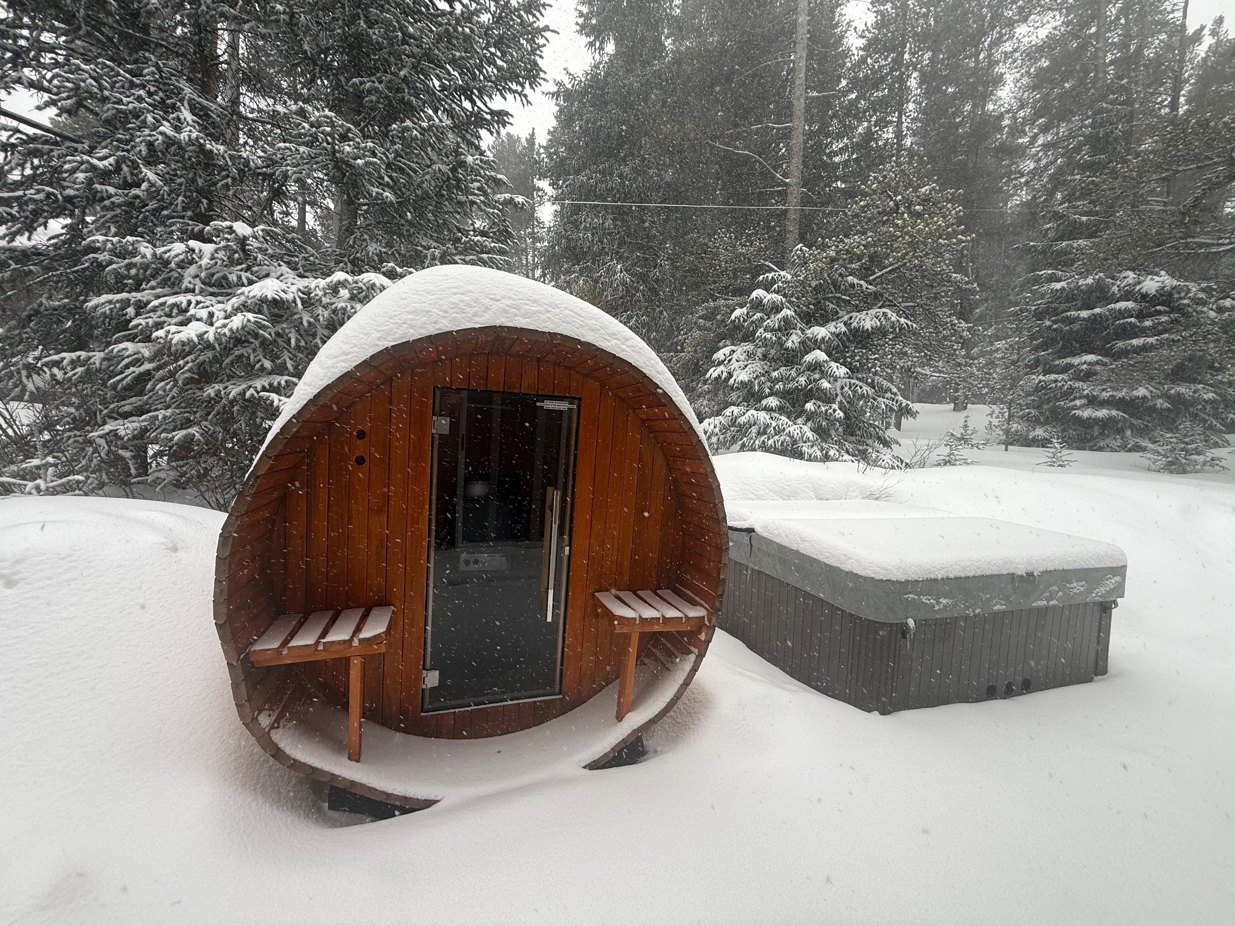 The outdoors has many relaxation opportunities. Sit in our gliders and enjoy the stream running through the property, or soak in the hot tub and/or fire up the sauna and enjoy some dry heat after a hike or a day skiing. There are also hammocks on the north side of the lot as well as a cornhole set, pickleball, badminton, and a fire pit (fire restrictions permitting.)