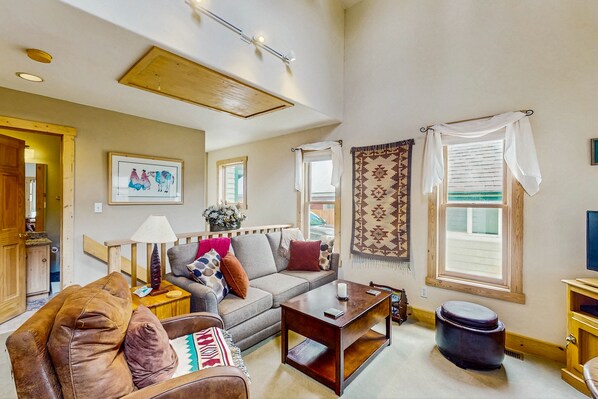Wenn Sie nach einer gemütlichen und praktischen Unterkunft in Breckenridge suchen, ist Harris House genau das Richtige für Sie. Genießen Sie den viktorianischen Charme in Kombination mit modernem Design und modernen Annehmlichkeiten sowie hochwertigen Oberflächen wie Buntglas-, Fliesen- und Holzb��den und Gewölbedecken. Stil strömt durch dieses Haus, das mit zwei separaten Küchen ausgestattet ist, von denen jede handgefertigt ist. Sie haben auch einen privaten Whirlpool, eine überdachte Veranda und einen Gasgrill für alle Ihre Kochbedürfnisse.