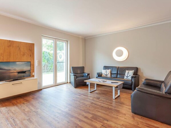 Parterre: neue moderne Ferienwohnung mit offener voll eingerichteter Küche mit 4-Plattenherd (Ceran), Backofen, Mikrowelle, Kühlschrank mit kleinem Gefrierfach, Geschirrspüler und diversen Elektrogeräten (z.B. Kaffeemaschine, Wasserkocher, Toaster), großzügiger Ess- und Wohnbereich mit TV/Sat (Flatscreen) und kostenfreiem WLAN, Bücher und Gesellschaftsspiele für gemütliche Abende vorhanden. Das Badezimmer ist mit Regendusche und WC ausgestattet. 1. Schlafzimmer mit einem Doppelbett (getrennte Matratzen je 90 x 200), Kleiderschrank und Kommode, 2. Schlafzimmer mit zwei Einzelbetten (je 90 x 200) und Kommode, Flur mit Garderobe, Hauswirtschaftsraum mit Waschmaschine und Wäscheständer. Außenbereich: 25m² große Terrasse mit Gartenmöbel für 4 Personen Erstvermietung Mai 2019 – Urlaub im schönen Seebad Breege/ Juliusruh! Die Wohnung ist eine Nichtraucherwohnung und ist nach Süden und Westen ausgerichtet. Internet/ WLAN steht kostenfrei zur Verfügung. Alle Räume sind mit Fußbodenheizung ausgestattet. Die Fenster sind mit elektrisch bedienbaren Rollläden verdunkelbar. Im Schlafzimmer und im Wohnbereich sind Fliegenschutzgitter. Eine abschließbare Remise kann für das Abstellen von Fahrrädern genutzt werden. Ein PKW- Stellplatz am Haus ist vorhanden. Auf der Terrasse haben Sie die Möglichkeit zu grillen. Haustiere mit Rücksicht auf Allergiker leider nicht gestattet!