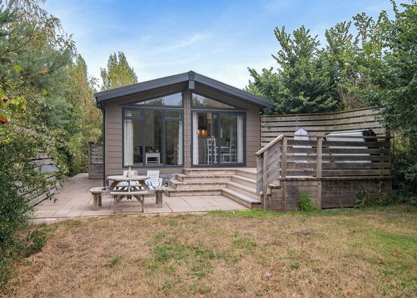 This is a lovely lodge tucked away with its own little garden leading off the decking and hot tub area making it ideal for a romantic weekend getaway. The stunning open plan bedroom with its super king size bed, a jacuzzi bath and ensuite bathroom allows you to make the most of the light and airy lodge. The open plan kitchen and lounge area feels spacious yet secluded for those cosy nights in. Outside there is a sunken hot tub with decking and a BBQ area ready for you to enjoy those summer evening watching the wildlife.. Henfields Country Retreat is part of our Autograph Lodge Holidays Collection and is nestled in the foothills of the Quantock Hills with panoramic views of the Mendips and Somerset levels. Designed to ensure guests have a luxurious stay whether you are here for a romantic break or a getaway for the family.