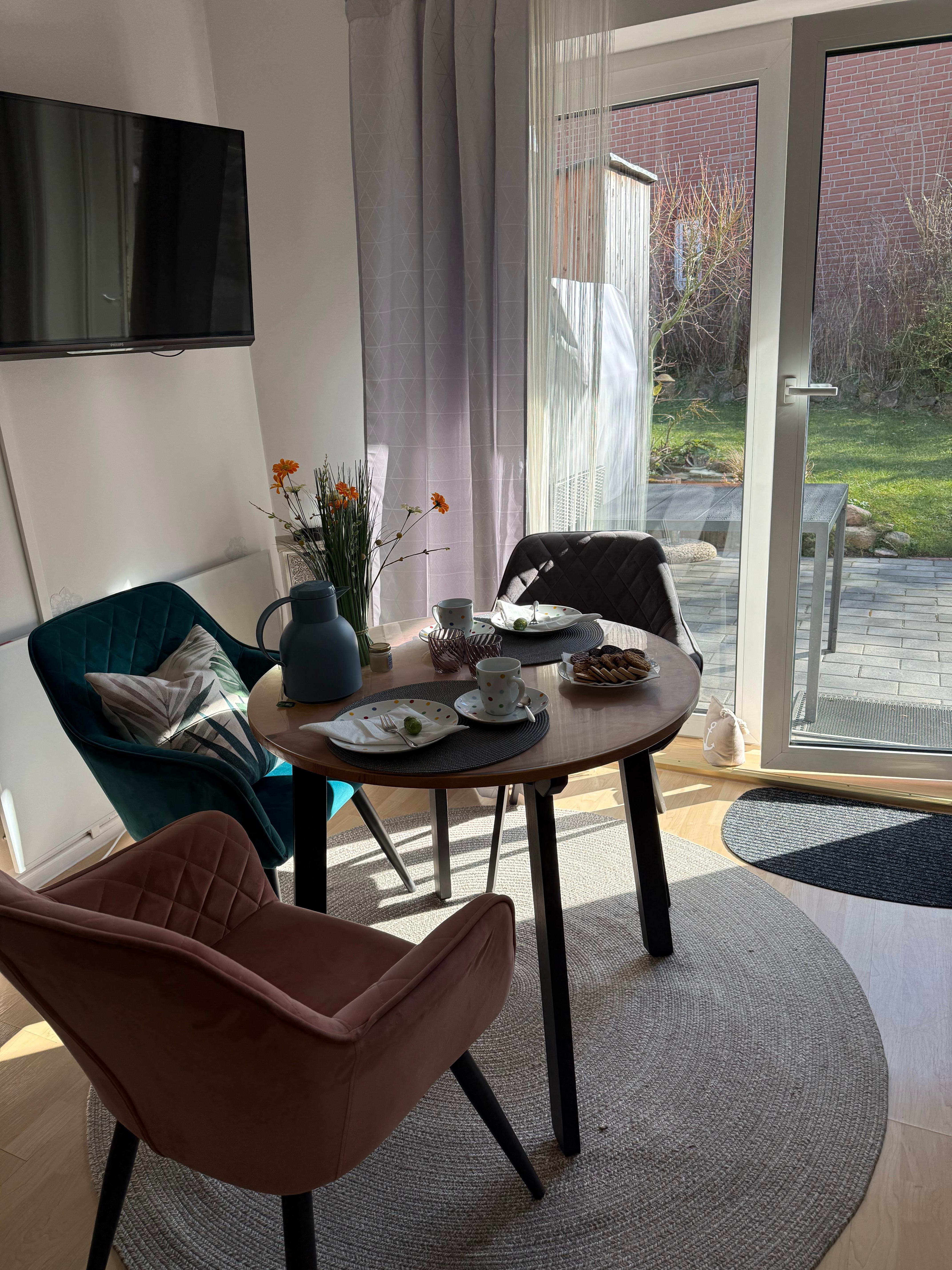 Die helle, ruhige und Allergiker freundliche Ferienwohnung (37m²) besteht aus einem gemütlichen Wohnzimmer, einem Essbereich mit Blick auf die Terrasse /Garten und einer modernen eingerichteten Küchenzeile. Ein behagliches Schlafzimmer und ein kleines schnuckeliges Bad. Ein kleiner Safe übernimmt Ihre Wertsachen.