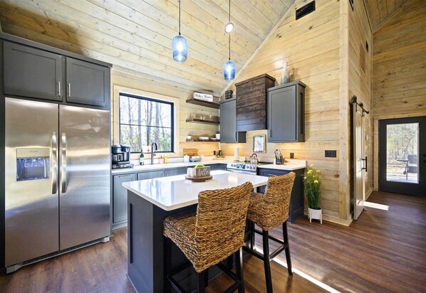 We had a great time and loved the cabin!! The place was new, very clean and well stocked. Perfect for the two of us!! We enjoyed the hot tub, outdoor seating with a tv and fireplace.
