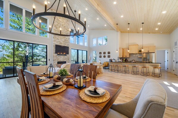 Relax your muscles and soak in the scenery from your private hot tub on the deck. Challenge your friends and family to epic cornhole battles, or gather around the fire pit for stargazing and storytelling.