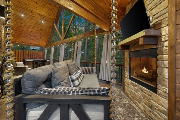 Romantic Couples Retreat: Private & Cozy with Hot Tub & Sauna, Swing Bed