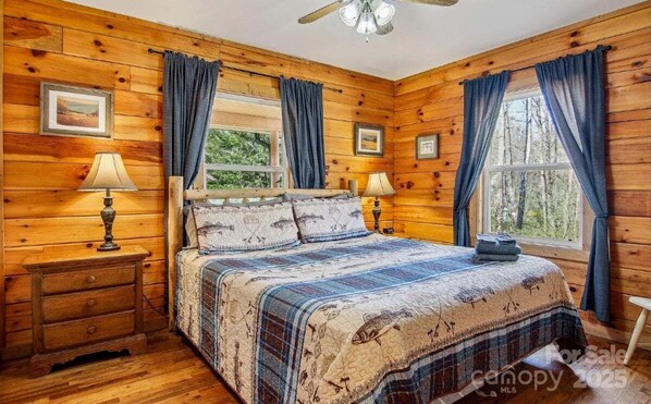 With two beautifully appointed bedrooms, including a luxurious King bed and a comfortable Queen bed, this cabin accommodates up to four guests. The single bathroom features a relaxing bathtub, ideal for unwinding after a day of adventure.