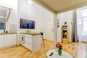 Dank der ausgezeichneten Lage (Stadtzentrum von Budapest) ist dieses Apartment zu Fuß nur 10 Minuten entfernt von: Straße Nagymező und Ungarische Staatsoper Operaház. Ebenfalls höchstens 15 Minuten entfernt: St.-Stephans-Basilika und Parlamentsgebäude Országház. Straßenbahnhaltestelle Nyugati Pályaudvar M ist nur 4 Gehminuten und Station Nyugati 6 Gehminuten entfernt.