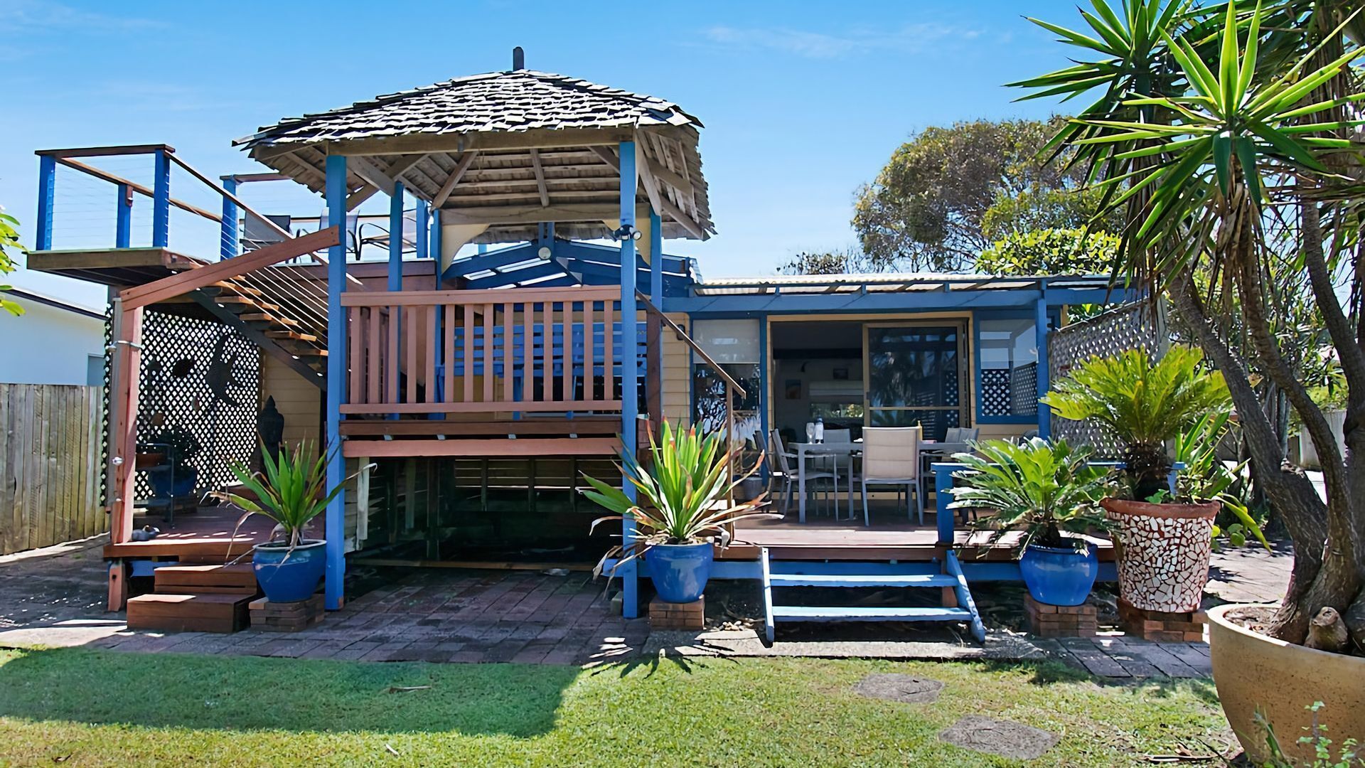 Das Paddle on 7 Mile ist ein wunderschön eingerichtetes Luxus-Strandhaus, das nur wenige Minuten von den Wellen des 7 Mile Beach in Lennox Head entfernt liegt. Dieses architektonisch gestaltete und dekorierte Haus ist eine moderne Interpretation des legendären Strandhauses von Cape Cod, das gebaut wurde, um die Meeresbrise und alles, was Lennox und die Umgebung von Byron zu bieten haben, zu nutzen. Für jeden Aspekt Ihres Urlaubskomforts sorgen luxuriöse Betten für eine große Familiengruppe mit bis zu 8 Schlafplätzen, exquisite Badezimmer, darunter ein eigenes Schlafzimmer mit freistehender Badewanne, ein glitzernder Pool und eine voll ausgestattete Küche, die sich zu einem fantastischen Raum erstreckt Essbereich im Freien und Grillplatz. Es gibt zwei interne Wohnbereiche und mehrere Außenbereiche zum Essen, Entspannen oder um einen ruhigen Ort zu finden, um den Wellen zu lauschen oder ein Buch zu lesen. Die warme und kalte Außendusche eignet sich perfekt zum Abspülen nach einem Tag am Strand. Das Hauptschlafzimmer befindet sich im Obergeschoss und verfügt über einen separaten Fernseh- und Leseraum, eine weitläufige Veranda und Blick auf den Ozean.