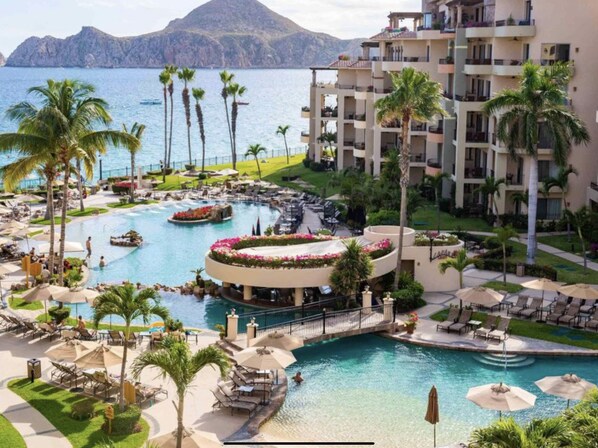 The dining tables sit six in style with space for more! The kitchens are fully-equipped to prepare gourmet meals and the 24-hour concierge service will help find your chef! There are washers and dryers located in the unit. The living rooms and all bedrooms open onto spacious patios with panoramic views of the pool, Medano Beach, the Sea of Cortez, and the famous Land's End.