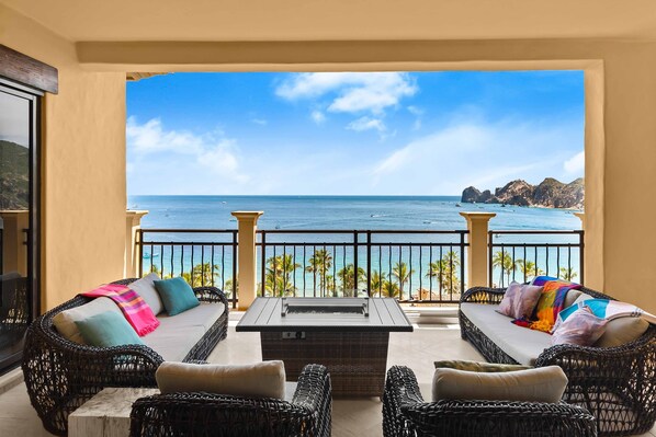 Das Penthouse in der fünften Etage bietet einen herrlichen Blick auf das Land's End sowie Meerblick von 3 Zimmern. Es hat einen WOW-Faktor zu Fuß in der großen Zimmer und Sie werden sofort auf die vordere Terrasse gezogen, die Sie zum Entspannen und Verweilen einlädt. Tauchen Sie ein in den Whirlpool und genießen Sie die Aussicht Tag oder Nacht. Auf der Terrasse befindet sich ein eingebauter Gasgrillbereich für Mahlzeiten im Freien.