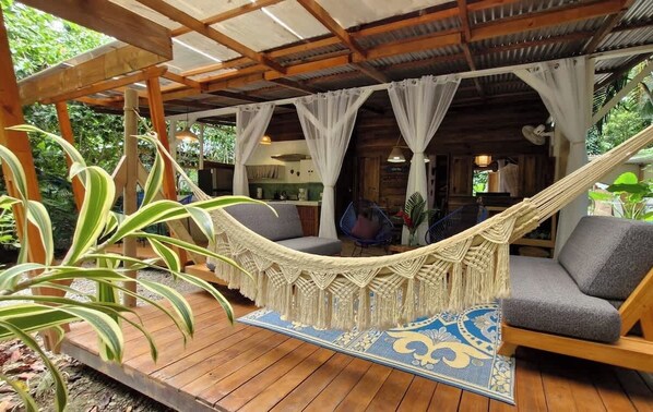 HOCH! HOUSE COSTA RICA ist der perfekte Ausgangspunkt für Ihren tropischen Urlaub, wo Sie entspannen und erkunden können. Eingebettet im Herzen von Playa Chiquita und 200 Meter vom Wasser entfernt, besteht dieses Anwesen aus 2 Dschungel-Casitas und einem tropischen Garten mit üppiger Flora und Fauna. Die Hauptcasita, UP! HAUS besteht aus zwei Schlafzimmern und einem Badezimmer sowie einem Wohn-/Ess- und Küchenbereich, der sich zum tropischen Garten hin öffnet. Es hat auch eine Terrasse und eine große Hängematte. Schlafzimmer Nr. 1 verfügt über ein Kingsize-Bett. (Es kann auch mit zwei Einzelbetten ausgestattet werden. Bitte teilen Sie uns im Voraus mit, ob Sie die Option mit zwei Einzelbetten bevorzugen.) Schlafzimmer Nr. 2 verfügt über ein großes Bett. HOCH! HAUS bietet Platz für 4 Personen. HOCH! Das HOUSE ist aus schwarzem Lorbeer-Hartholz gefertigt und verfügt über indigofarbene Textilien sowie lokale Bribri-Kunstwerke und Kunsthandwerk. Die Betten sind sehr bequem, mit Baumwollbettwäsche mit einer Fadenzahl von über 400 und zwei großen Kissen pro Person. Im Badezimmer liegen Kiö Cosmética Natural-Produkte bereit, die aus lokal und biologisch angebauten Kokosnüssen und Ylang-Ylang hergestellt werden. Das Wetter in Playa Chiquita ist recht gemäßigt, und an manchen Abenden benötigen Sie möglicherweise sogar ein leichtes Langarmshirt. Jedes Schlafzimmer und jeder Wohnbereich verfügt über einen Ventilator. HOCH! HOUSE ist mit geeigneten Mückenschutzmitteln (wie Netzen, Mücken-Räucherspiralen und Ultraschallschutzmitteln) gut ausgestattet, um Stiche zu vermeiden. In jedem Schlafzimmer gibt es Flachbildfernseher mit ChromeCast, sodass Sie Ihre Medien-Apps (wie Netflix, DisneyPlus und YouTube) auf den Bildschirm streamen können. Die Küche verfügt über einen Bluetooth-Lautsprecher, sodass Sie Ihre Musik im Haus hören können. Wir verstehen, dass Konnektivität für unsere Gäste wichtig ist, deshalb gibt es symmetrisches Glasfaser-Internet. Das Anwesen ist mit einem 24-Stunden-Sicherheitssystem, schlüssellosen Zugangsschlössern und Parkplätzen ausgestattet. Ein Parkplatz ist für UP! vorgesehen. HAUS. Wenn Sie ankommen, können Sie Ihr Gepäck abgeben und sind in wenigen Minuten zu Fuß am Strand, in einem tollen Restaurant oder auf dem Markt. In der Nähe gibt es wunderbare Stände am Straßenrand, die frisches Obst, selbstgebackenes Brot, Pipa Fria (kaltes Kokosnusswasser), Empanadas und Patis verkaufen.Sie können Fahrräder mieten (auf der anderen Straßenseite) und die Gegend von Caribe Sur ganz einfach erkunden. Wenn Sie im Haus kochen möchten, ist die Küche mit einem voll ausgestatteten Backofen, einem Vier-Flammen-Herd, einem Kühlschrank, einer Kaffeemaschine, einem Mixer, einem Toaster, Kochgeschirr, Geschirr, Bechern, Gläsern, Besteck und Utensilien gut ausgestattet, sodass Sie köstliche Mahlzeiten zubereiten können . Wir füllen die Küche mit Salz, Pfeffer, Zucker, Mehl und Olivenöl. Es gibt einen Markt innerhalb von zwei Minuten zu Fuß (El Duende Gourmet) und zwei größere Märkte (Super Negro Green Market und Super Cocles) in einer kurzen Rad- oder Autofahrt, auf denen Sie Ihre Vorräte auffüllen können. Wir empfehlen außerdem den wöchentlichen Samstags-Bauernmarkt (Feria Agrícola y Artesanal de Puerto Viejo) in Puerto Viejo für köstliche Produkte, Käse, Schokolade und Brot. Jeder Tag präsentiert ein neues Naturerlebniscom/"> UP! HOUSE COSTA RICA . Auf dem Grundstück sehen wir oft Brüllaffen, Faultiere, grüne Aras, Tukane, Leguane, Agouti, Montezuma oropendula, Kolibris, blaue Morpho-Schmetterlinge, Libellen, Glühwürmchen, Geckos und mehr! Ihr Aufenthalt beicom/oh/PropertyOwner/App" target="_blank"> UP! HOUSE COSTA RICA umfasst einen Concierge-Service, der Sie bei der Buchung von Transportmitteln unterstützt, Ihnen Restaurantempfehlungen gibt und unvergessliche Erlebnisse und Abenteuer schafft, damit Sie die Gegend von Caribe Sur ganz einfach erkunden können. wie zum Beispiel: Jaguar-Rettungszentrum Faultier-Schutzgebiet ARA Manzanillo – Projekt zur Wiederansiedlung grüner Aras Reiten (Dschungel und Strand) Zip-Lining- und Dschungel-Abenteuerkurs Schnorcheln Tauchen (saisonal) Paddle-Boarding / SUP Surfunterricht Kajakfahren Motorisiertes Parasailing Wandern im Cahuita-Nationalpark Wandern in der Tierwelt von Gandoca-ManzanilloZuflucht Wanderung zum Wasserfall in Bribri Wildwasser-Rafting Schokoladenherstellung von der Bohne zur Tafel Karibische Küche Schokoladen- und Bauernhoftouren Erfahrungen indigener Gemeinschaften Yoga-/Tanz-/Fitnesskurse Spa-Behandlungen und Massage Wir freuen uns auf Ihren Aufenthalt bei UP! HAUS COSTA RICA ein wunderbares und unvergessliches Erlebnis. Pura Vida!