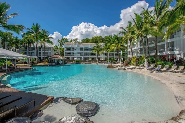 Recently refurbished, this expansive 3-bedroom, 2-bath penthouse in the Serenity Wing of Beach Club Palm Cove offers families and friends a spacious, private escape. Enjoy a rooftop terrace with BBQ, outdoor lounge, and spa bath, lift access, and underground parking. Centrally located opposite the beach and within walking distance to restaurants, cafes, and the village, with resort amenities including pools, swim-up bar, gym, and day spa.