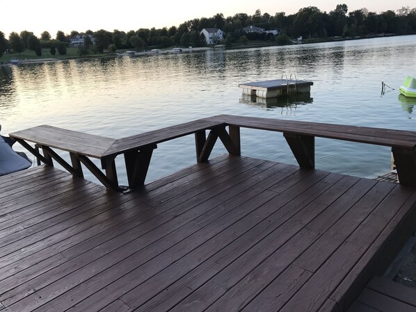 On the lake level, we have a screened in porch, a fire pit, plenty of seating, and various areas to relax with a book, sit quietly listening to nature, or chat with friends. We also have 2 kayaks, one paddle board, a floating dock in the water, and various other lake toys.