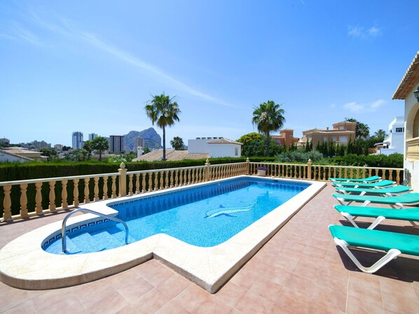 Atemberaubendes alleinstehendes Ferienhaus mit privatem Pool, W-LAN, Klimaanlage, TV und Terrasse
