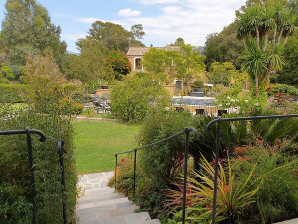 Sehr schöne Ferienanlage "Le Home", auf 3 Stockwerken. 41 Wohnungen in der Residenz. 1 km vom Zentrum von Calvi, 23 km vom Zentrum von L´Ile Rousse, 92 km vom Zentrum von Bastia, in einem Wohnquartier, 400 m vom Meer, 400 m vom Strand. Zur Mitbenutzung: Grundstück 7'000 m2 (eingezäunt), Park mit Rasen und Bäumen, wunderschöner Garten zum Entspannen, 2 Schwimmbäder (9 x 4 m, saisonale Verfügbarkeit: 01.Apr. - 31.Okt.). Aussendusche, Terrasse. In der Anlage: Empfang, Wireless LAN, Waschmaschine (zur Mitbenutzung). Parkplatz auf dem Grundstück. E-Ladestation. Supermarkt 400 m, Bushaltestelle 500 m, Bahnstation 400 m, Sandstrand 300 m. Bitte beachten: autofreie Ferienanlage, Fahrzeug empfohlen. Nicht geeignet für Kinder unter 18 Jahren. Das Foto ist nur ein Hausbeispiel.